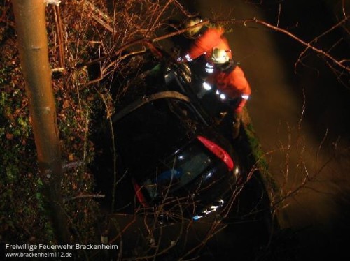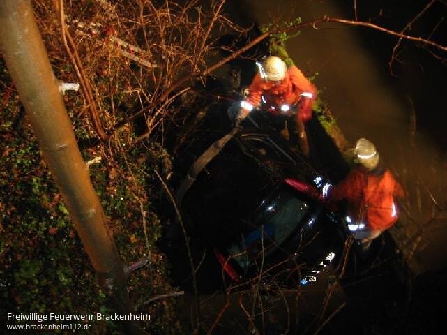 Gegen 05.30 Uhr befuhr er mit seinem Fiat Punto die Landesstraße von Meimsheim in Richtung Lauffen. Auf Höhe der Schellenmühle kam er nach rechts von der Fahrbahn ab. Das Fahrzeug kam nach Überwindung einer Böschung in der Zaber zum Stehen. Die drei Insassen erlitten zum Glück nur leichte Verletzungen. Die Freiwillige Feuerwehr Brackenheim war mit 18 Mann im Einsatz. Dem Unfallverursacher wurde Blut entnommen, der Führerschein wurde beschlagnahmt.