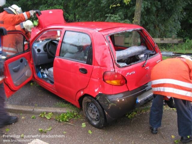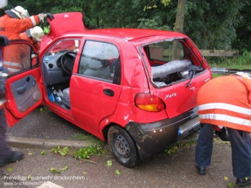 Tätigkeit: Beim Eintreffen der Feuerwehr waren die PKW-Insassen bereits in Sicherheit. Das Fahrzeug wurde mit dem Greifzug aus der Zaber geholt, da Betriebsstoffe ausliefen.