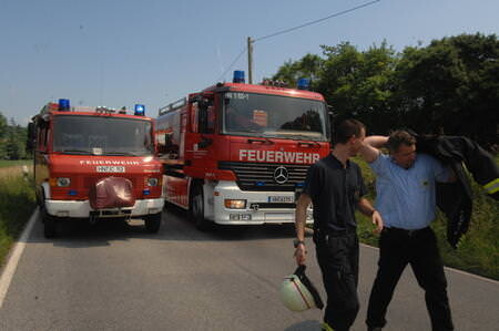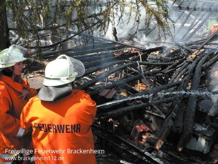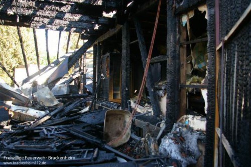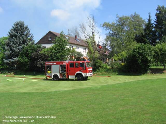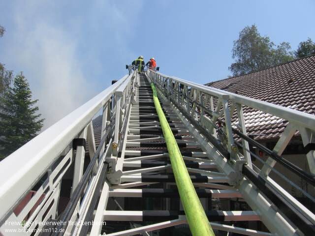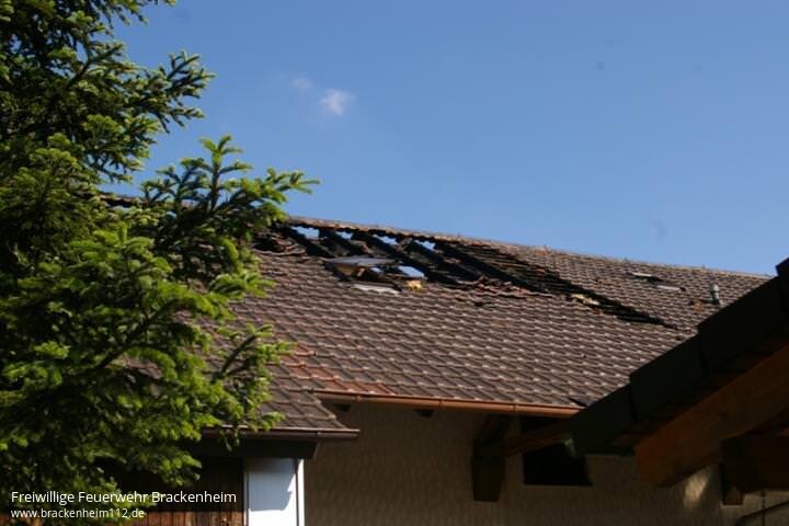 Durch zwei Trupps im Innenangriff mit C-Rohren und dem Wenderohr von der Drehleiter konnte eine Ausbreitung auf das gesamte Wohngebäude verhindert werden. So wurde nur der Dachstock und ein Teil der Wohnung in Mitleidenschaft gezogen wurde. Durch Löschwasser kam es aber auch in einigen vom Feuer nicht betroffenen Räumen zu Schäden. Von der Hitzestrahlung wurden selbst Bäume in 40m Entfernung noch geschädigt.
