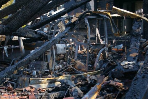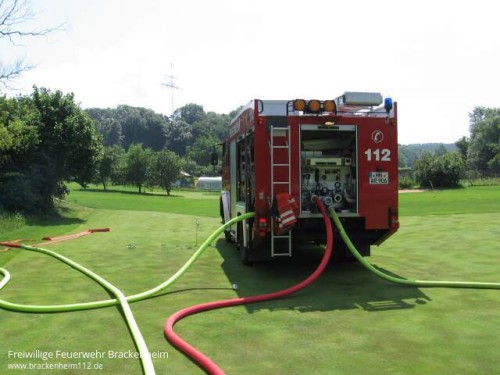 Um 10.43 Uhr wurde die Feuerwehr alarmiert. Ein Golflehrer hatte den Brand vom angrenzenden Golfplatz aus bemerkt. Er alarmierte die Feuerwehr und versuchte dann selbst noch vergeblich den Brand zu löschen. Dabei zog er sich eine Rauchgasvergiftung zu und musste vom Rettungsdienst vorsorglich ins Krankenhaus gebracht werden.
