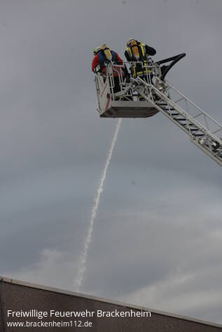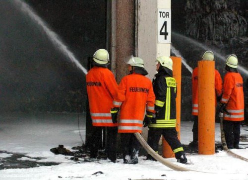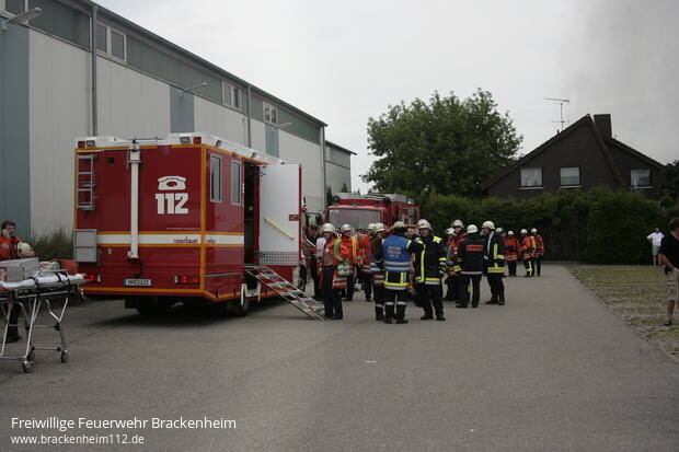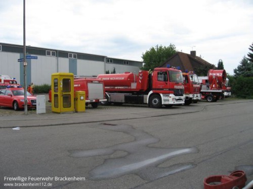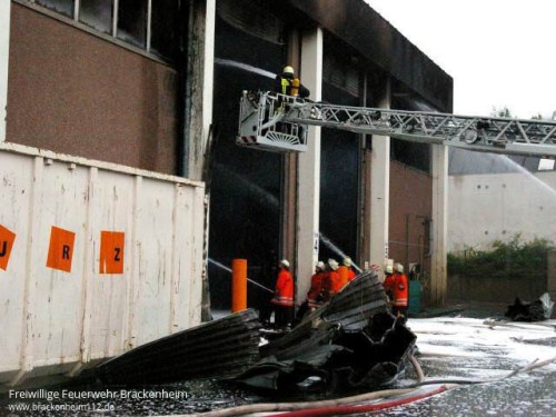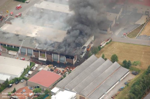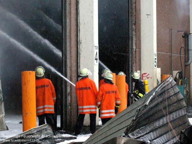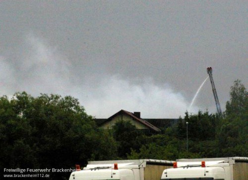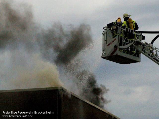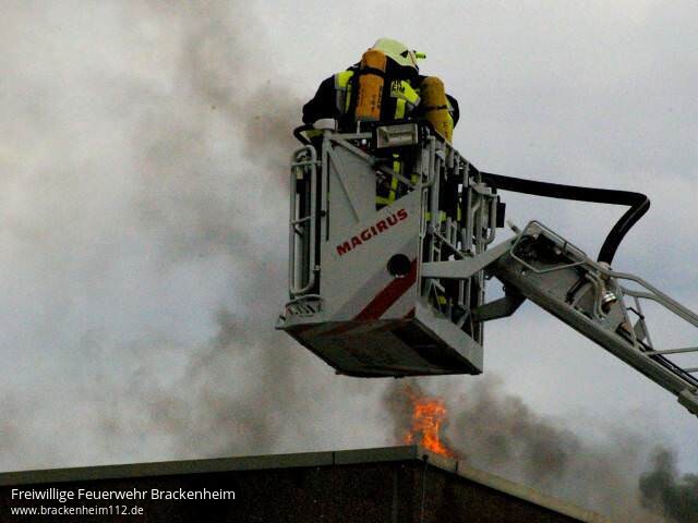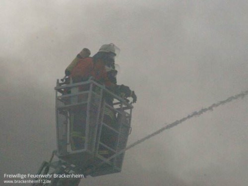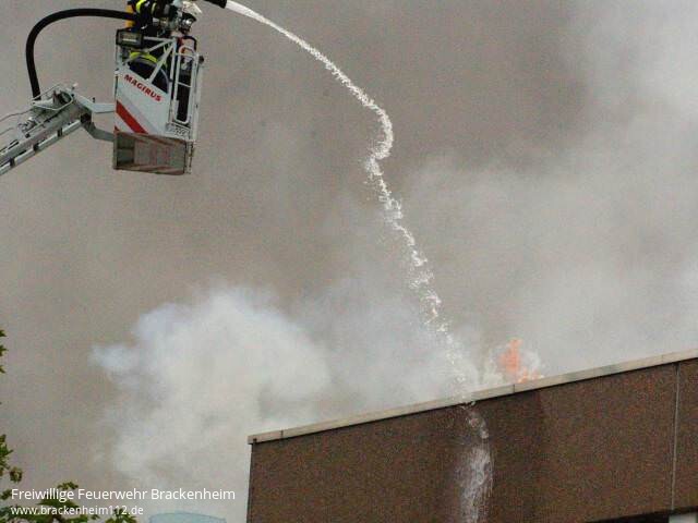 Kurz darauf kam es zu einer Durchzündung als ein Teil des Daches einstürzte. In den folgenden Minuten wurden ständig weitere Kräfte mit diversen Lösch- und Sonderfahrzeugen nachalarmiert. Eine Übersicht aller eingesetzten Fahrzeuge befindet sich am Ende des Berichts.