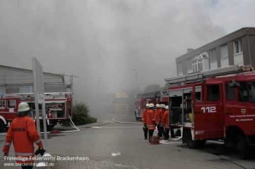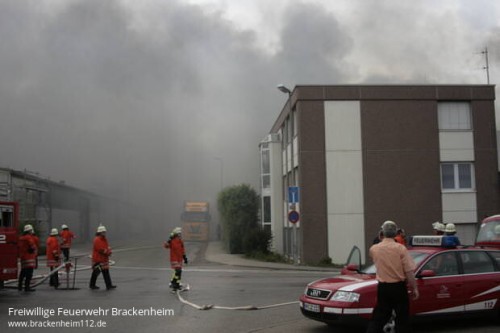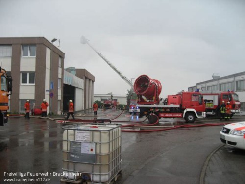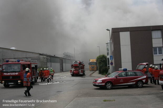 Beim Eintreffen der ersten Einsatzkräfte war bereits eine starke Rauchentwicklung festzustellen. Auf Grund der guten Kentnisse über den Betrieb durch viele Begehungen und Übung wurde sofort Vollalarm für die Feuerwehr Schwaigern ausgelöst. Nur wenig später wurden eine Drehleiter und ein GW-Mess angefordert.