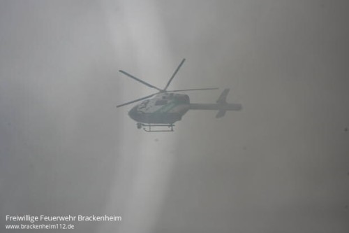 Ein Polizeihubschrauber kreiste über der Einsatzstelle und machte Fotos und Aufnahmen mit der Wärmebildkamera, die der Einsatzleitung für die Lagebeurteilung äußerst hilfreich waren. Auch die Ausbreitung der Rauchwolke wurde überwacht und gemeldet.