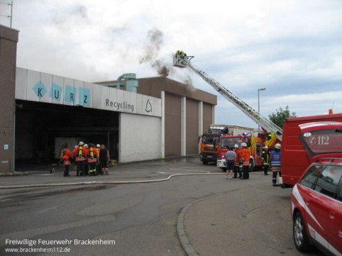 Um 11:31 Uhr löste die Brandmeldeanlage der Fa. Kurz Recycling im Schwaigerner Industriegebiet aus. Die Fa. Kurz verarbeitet Material aus der Sammlung der blauen und gelben Tonne.