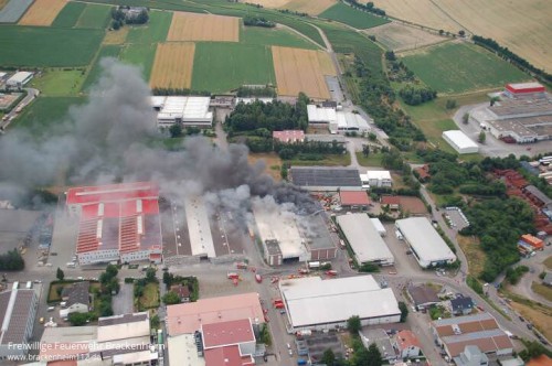 In der Spitze waren ca. 160 Feuerwehrleute mit 40 Fahrzeugen an der Einsatzstelle. Der Rettungsdienst war mit einem Rettungswagen und einem Notarztwagen sowie dem Leitenden Notarzt vor Ort. Von der Polizei wurde das Industriegebiet weiträumig abgesperrt.