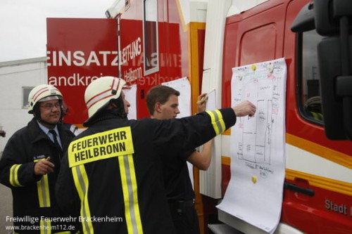 In der Zwischenzeit wurde die Einsatzleitung vom ELW 2 des Landkreises gesteuert. Der ELW 2 der Feuerwehr Heilbronn diente als Besprechungsraum, in dem mehrere Einsatzbesprechungen und zwei Pressekonferenzen abgehalten wurden.