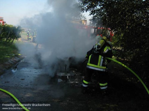 Zu einem PKW-Brand im Gewann Sommerhälde zwischen Botenheim und Meimsheim wurde die Freiwillige Feuerwehr Brackenheim am Dienstagvormittag alarmiert.