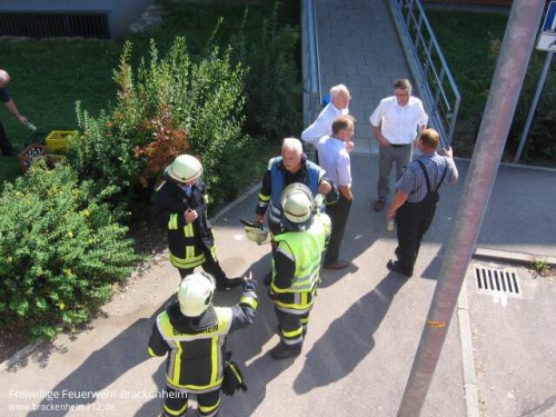 Mit dem Einsatzstichwort "Gefahrguteinsatz" wurde die Freiwillige Feuerwehr Brackenheim zur Mittagszeit zum örtlichen Gymnasium alarmiert. In einem Chemievorbereitungsraum waren dort aus einem Behältnis geringe Mengen von Brom, einer stark ätzenden und giftigen Substanz, freigesetzt worden.