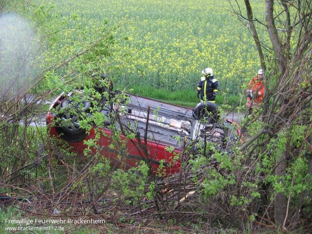 Zu einem Verkehrsunfall zwischen Brackenheim und Neipperg wurden wir am Dienstagnachmittag von der ILS Heilbronn alarmiert. An einer Kreuzung kam es zum Zusammenstoß zweier Fahrzeuge, infolgedessen ein Fahrzeug von der Fahrbahn abkam, sich überschlug und auf dem Dach zum Liegen kam.