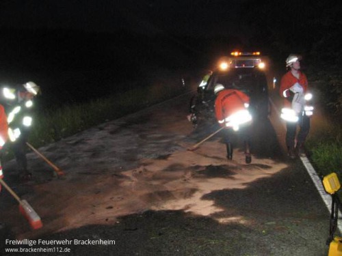 Mit dem Alarmstichwort "Auslaufender Kraftstoff" wurden wir am Mittwochabend von der ILS Heilbronn zu einem Verkehrsunfall auf der Kreisstraße zwischen Neipperg und Schwaigern alarmiert. Ein PKW war dort von der Straße abgekommen, gegen einen Baum geprallt und wieder zurück auf die Straße geschleudert worden, wo in der Folge Betriebsstoffe ausliefen. Der Fahrer des PKW war glücklicherweise nur leicht verletzt und wurde bereits vom Rettungsdienst versorgt.