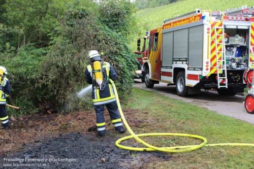 Zu einem Kleinbrand wurden wir am Samstagabend nach Brackenheim alarmiert. Während eines Arbeitsdienstes am Vereinshaus machte ein örtlicher Verein ein Grillfeuer. Beim Verlassen der Feuerstelle wurde aber höchstwahrscheinlich versäumt, das Feuer vollständig zu löschen. Vermutlich durch einen Windstoß konnte das Feuer später wieder aufflammen und breitete sich über trockenes Gras in ein Gebüsch aus.