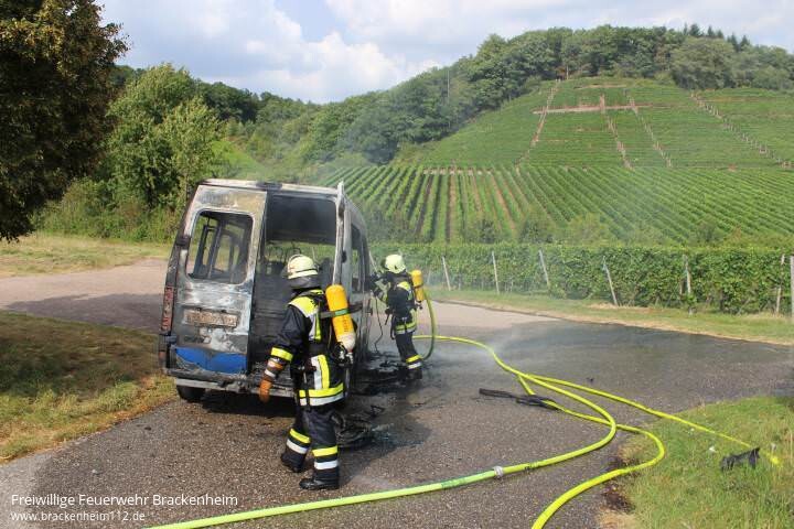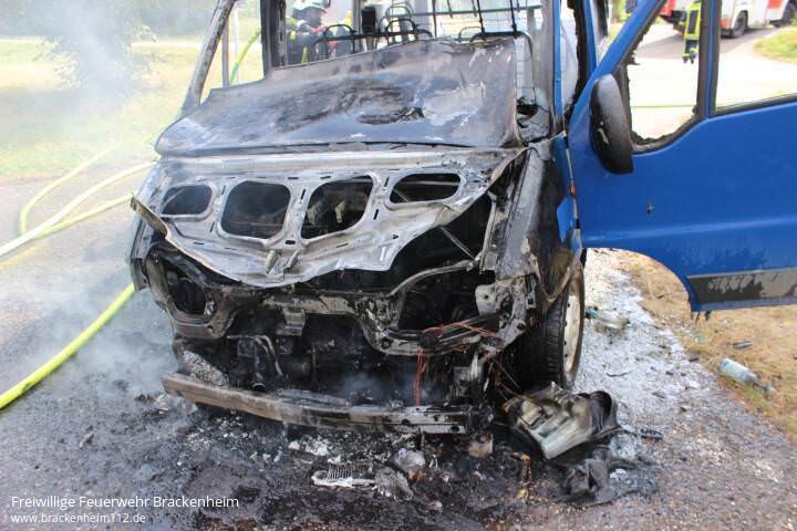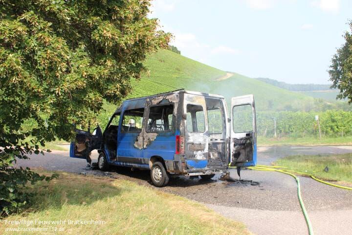 Zu einem PKW-Brand auf der L1107 in Richtung Stetten wurden wir von der ILS Heilbronn am Montagnachmittag alarmiert. Beim Eintreffen des Einsatzleiters brannte ein auf dem Feldweg neben der Fahrbahn abgestellter Kleintransporter bereits im Vollbrand.