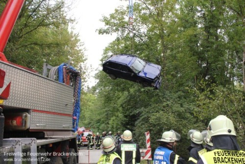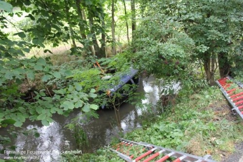 Aus dem gegen ein Umstürzen gesicherten Fahrzeug konnte die Fahrzeugführerin dann gemeinsam von Kräften der Feuerwehren Brackenheim und Lauffen aus dem Fahrzeug befreit werden. Mit der Schleifkorbtrage wurde die verletzte Pkw-Lenkerin dann über Steckleiterteile die steile Uferböschung hinaufgezogen, wo diese der Rettungsdienst zur weitern Behandlung übernommen hat.