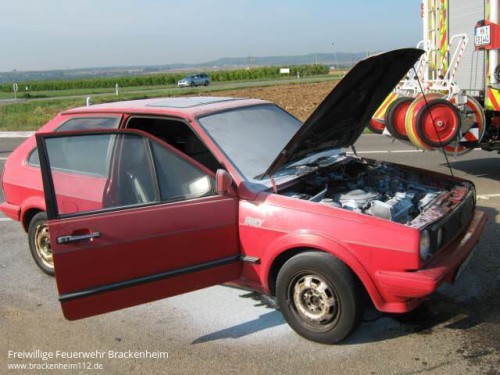 Vom HLF Brackenheim wurde der Einsatzort dann schließlich am Kreisel zwischen Meimsheim und Kirchheim aufgefunden. Ein Fahrzeug hatte dort im Motorraum gebrannt, konnte aber bereits vom Fahrer mit einem Pulverlöscher vollständig abgelöscht werden.