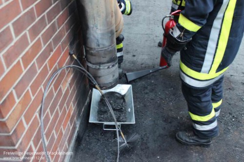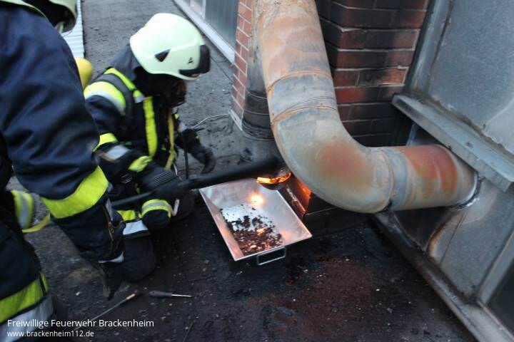 Vor dem Eintreffen der Feuerwehr wurden von den Betriebsangehörigen bereits mehrere Feuerlöscher im Gebäudeinneren eingesetzt. Von der Feuerwehr wurde der Brand von einem Trupp unter Atemschutz mit einem weiteren CO²-Löscher gelöscht. Anschließend wurden die restlichen Glutnester mit dem Schornsteinfegerwerkzeug aus dem Abzugkamin entfernt sowie der Kamin und der betreffende Bereich der Industriehalle mit der Wärmebildkamera kontrolliert.