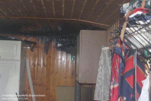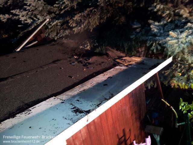 Beim Eintreffen an der Einsatzstelle schlugen bereits Flammen aus dem Dach und um den Bereich eines Ofenrohres. Da zu diesem Zeitpunkt unklar war, ob sich noch jemand in dem Gartenhaus befindet, wurde die Türe mittels Brechwerkzeug aufgehebelt und gleichzeitig eine Fensterscheibe eingeschlagen, um die Brandbekämpfung auch von außerhalb vornehmen zu können.