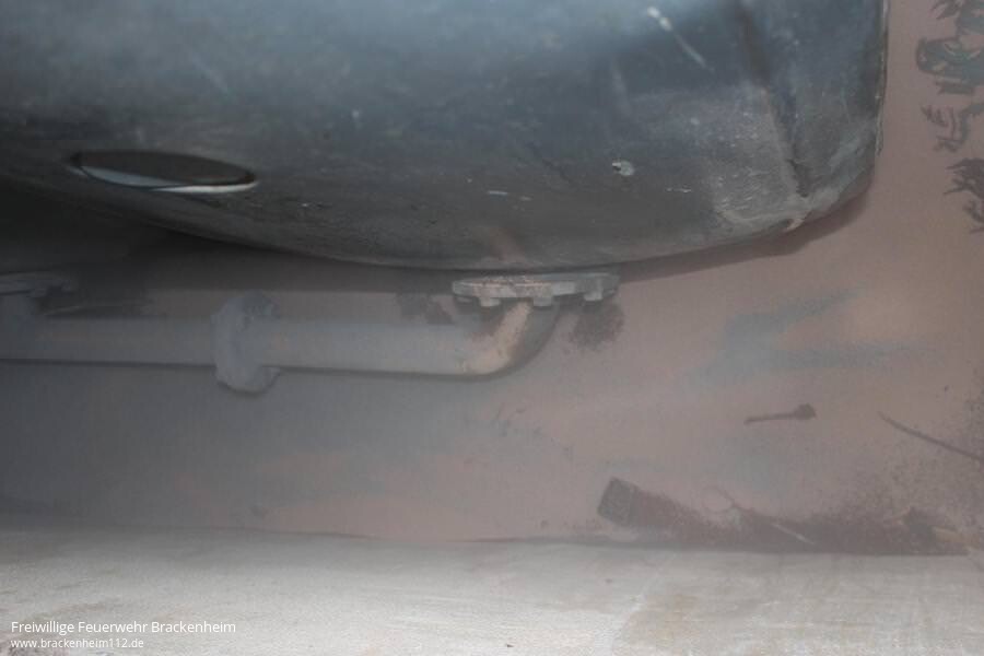 Von der Feuerwehr wurde das ausgelaufene Öl zunächst mit Ölbindemittel aufgenommen. Das Leck am Tank konnte zwar nach kurzer Zeit gefunden werden, war aber an einer Stelle, an der kein Dichtkissen oder ähnliches angebracht werden konnte.