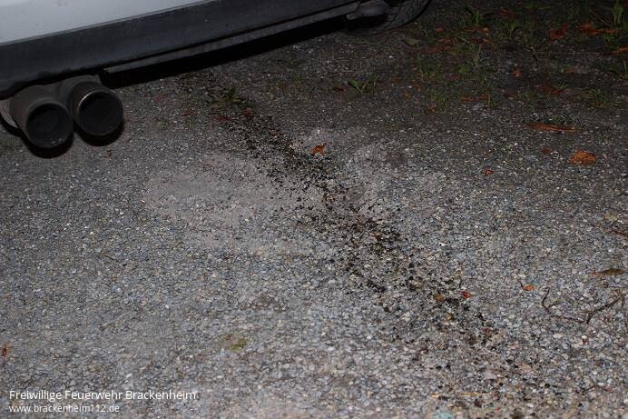Von der Feuerwehr wurde die Ölspur mit Ölbindemittel abgestreut. Zusätzlich wurden Ölspurwarnschilder aufgestellt.