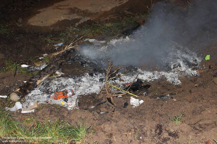 Beim Eintreffen an der Einsatzstelle war das Feuer unbeaufsichtigt, zudem wurde festgestellt , dass auch Plastik und Kunststoff verbrannt werden. Mit dem Schnellangriff des TSF-W aus Stockheim wurde das Feuer gelöscht.