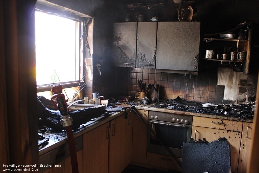 Das Feuer war schnell unter Kontrolle und konnte von den Einsatzkräften abgelöscht werden, die Küche brannte aber vollständig aus. Von den Feuerwehrkräften wurde der Brandschutt anschließend ausgeräumt und noch vorhandene Glutnester abgelöscht. Stetig wurden die betroffenen Bereiche mit der Wärmebildkamera auf weitere Glutnester überprüft. Mit der Drehleiter und der Wärmebildkamera wurde auch der Dachvorsprung auf Hitzebeaufschlagung kontrolliert. Während den Nachlöscharbeiten wurden zudem Belüftungsmaßnahmen durchgeführt.