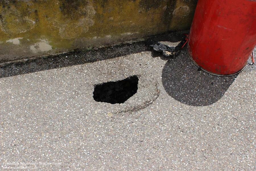Auf einer Straße in einem Wohngebiet von Hausen konnte am Fahrbahnrand ein Loch mit einem Durchmesser und einer Tiefe von jeweils 20 cm gefunden werden. Von der Feuerwehr wurde die Gefahrenstelle abgesperrt und der örtliche Bauhof verständigt.