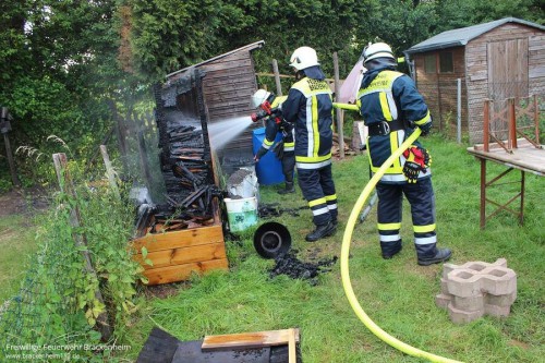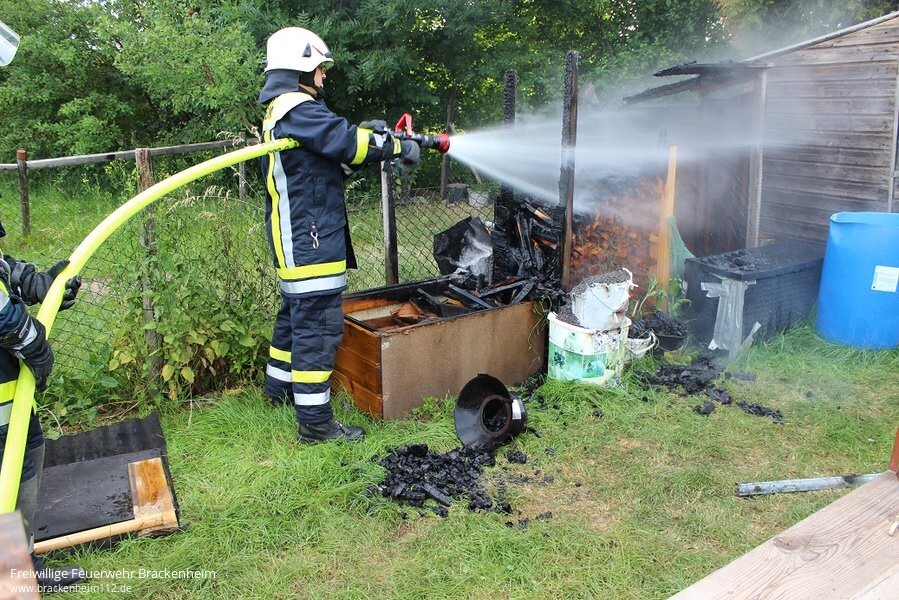Bis zum Eintreffen an der Einsatzstelle konnte das Feuer durch den zufällig vorbeikommenden Kommandanten aus Nordheim mit Regenwasser soweit abgelöscht werden, dass eine Ausbreitung auf die unmittelbar daneben stehende Gartenhütte verhindert wurde. Von der Feuerwehr wurde der Brand mit dem Schnellangriff des HLF vollständig abgelöscht.