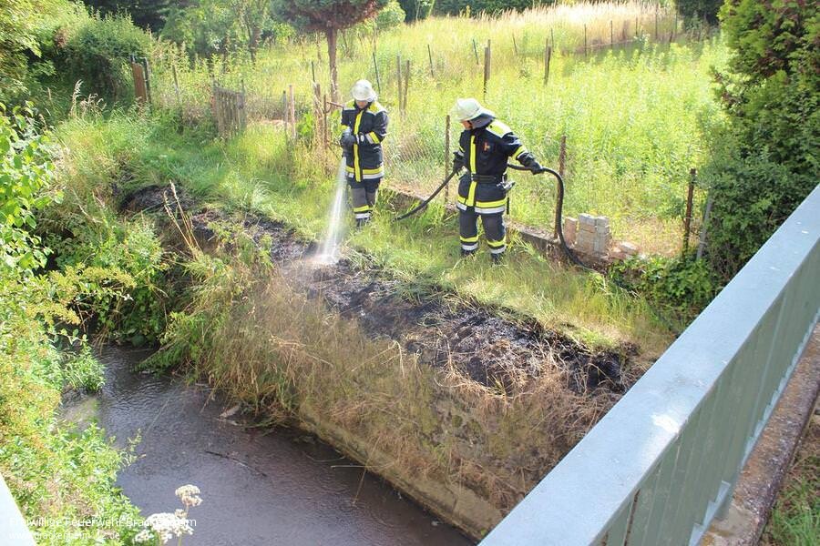 Von der ILS Heilbronn wurden wir am Mittwochabend zu einem Flächenbrand nach Hausen alarmiert. Aus unbekannter Ursache brannte in der Neckarstraße, im Bereich der Bushaltestelle, die Böschung entlang des Baches auf einer Länge von ca. sieben Metern.