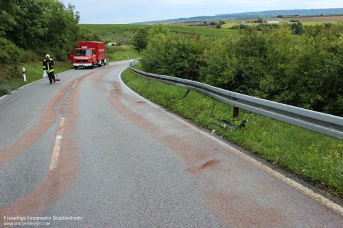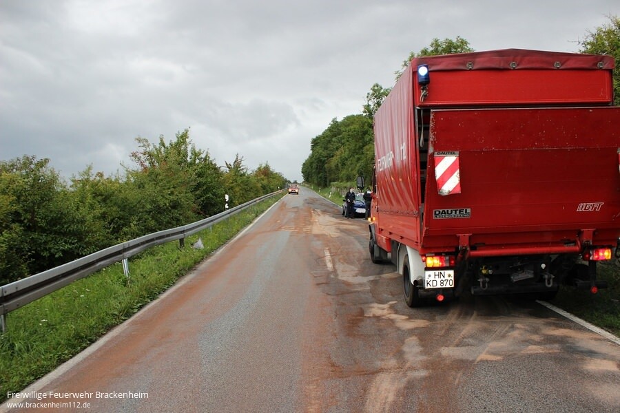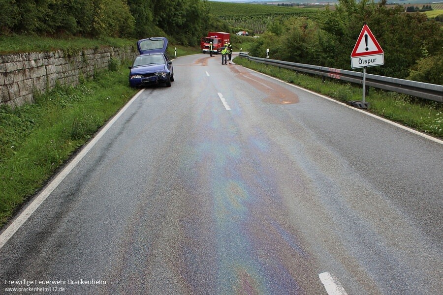 Von der ILS Heilbronn wurden wir am Samstagabend zu einer Ölspur auf die Kreisstraße in Richtung Neipperg alarmiert. Ein PKW war bereits auf dieser Ölspur ins Schleudern geraten und mit der Leitplanke kollidiert.
