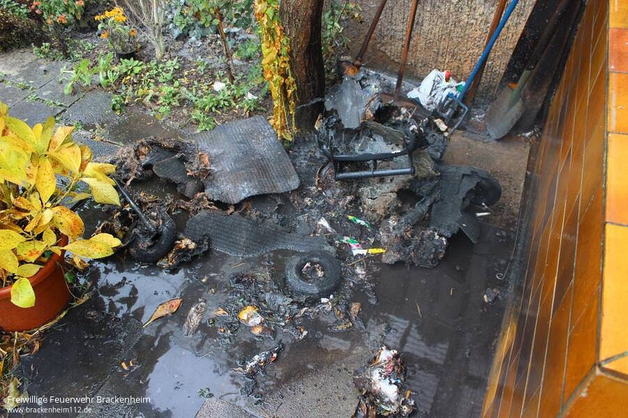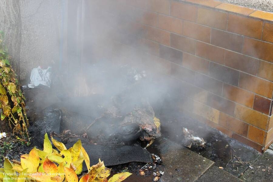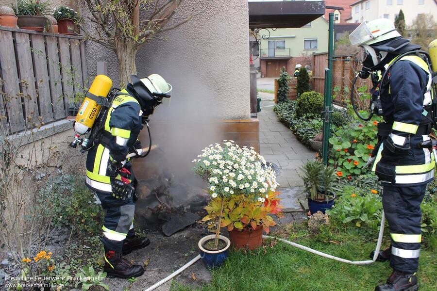 Da der Einsatzort direkt gegenüber dem Wohnhaus eines Feuerwehrkameraden lag, konnte dieser mit einem privaten Feuerlöscher den Brand bereits vor Eintreffen des Löschfahrzeugs ablöschen. Mittels eines C-Rohrs und Kleinlöschgerät wurde der Brand dann schließlich von einem Trupp unter Atemschutz vollständig gelöscht und die Fassade des Gebäudes gekühlt.
