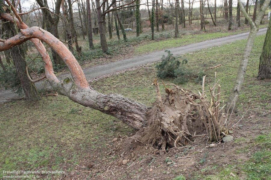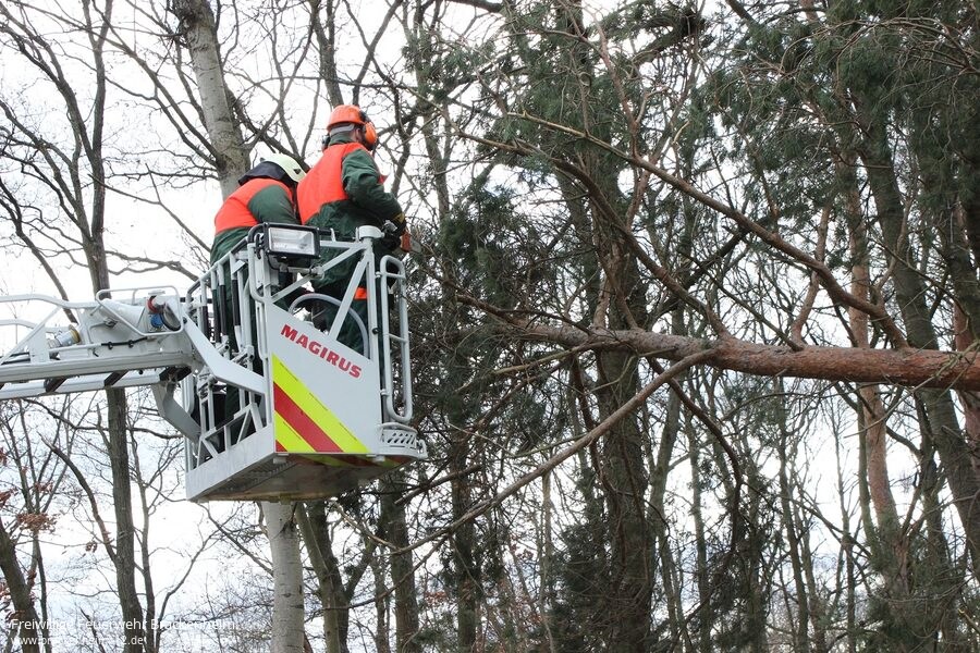 Nach der Erkundung durch Kommandant und Bauhofleiter war man sich einig, dass der Baum beseitigt werden müsste. Der Baum hing nur in der Leitung und lehnte sich noch an einen anderen Baum, so dass starke Spannungen bestanden. Da am Feuerwehrgerätehaus Brackenheim ohnehin gerade Kameraden anwesend waren, wurde die Drehleiter nachgefordert.