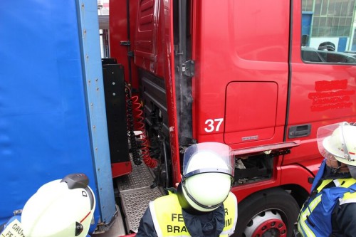 Von der Feuerwehr wurde mit einem Rohr der betroffene Bereich abgekühlt, worauf die Rauchentwicklung verschwand. Im weiteren Verlauf wurde versucht zu erkunden, woher genau die Rauchentwicklung kam. Da dies nicht gelang wurde in Absprache mit dem LKW-Fahrer und der Polizei eine LKW-Reparaturwerkstatt informiert. Durch einen Trupp unter Atemschutz wurde anschließend noch der Brandschutz sichergestellt.