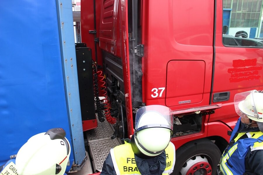 Mit dem Alarmstichwort "LKW-Brand" wurden wir am Montagmittag von der ILS Heilbronn in den Stadtteil Hausen alarmiert. Vor der Einfahrt zu einem Industriebetrieb stand dort ein LKW, bei welchem eine deutliche Rauchentwicklung aus dem Bereich unterhalb der Fahrerkabine sichtbar war. Eine offene Flamme war nicht sichtbar.