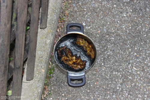 Bei der Erkundung wurde festgestellt, dass das Gebäude vollständig verraucht war. In der Küche wurde von den Einsatzkräften ein Topf mit Essensresten entdeckt, der dann aus dem Haus verbracht wurde. Zur Sicherheit wurde das Gebäude noch mit der Wärmebildkamera kontrolliert, glücklicherweise ohne Ergebnis. Parallel wurde das Gebäude noch mittels Elektrolüfter entraucht.