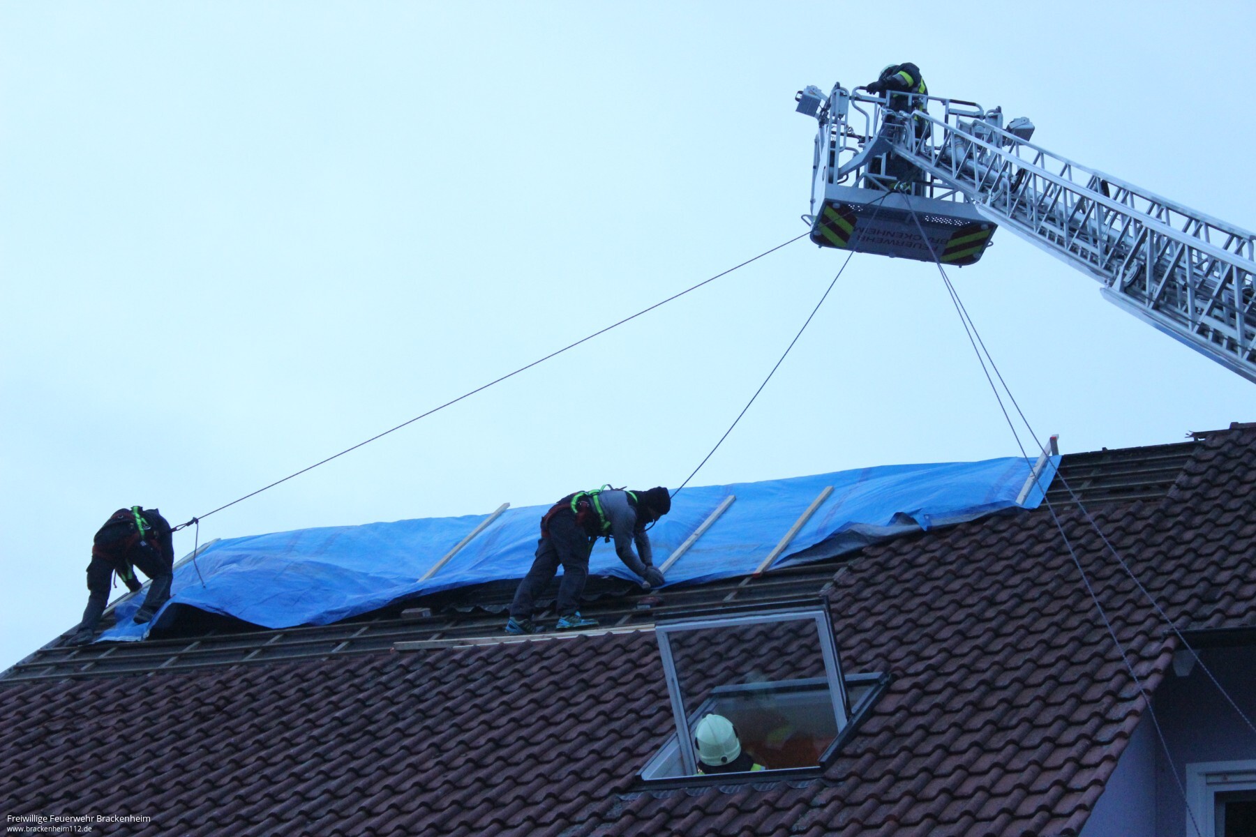 Das Dach wurde nach den Löscharbeiten von einem Fachbetrieb notdürftig verschlossen. Zur Sicherung der Arbeiter kamen die Gerätesätze Absturzsicherung zum Einsatz. Zur Ablösung des Regelrettungsdienstes während des Atemschutzeinsatzes kamen vier Kräfte des DRK OV Brackenheim zur Einsatzstelle. Einsatzende war gegen 19 Uhr.