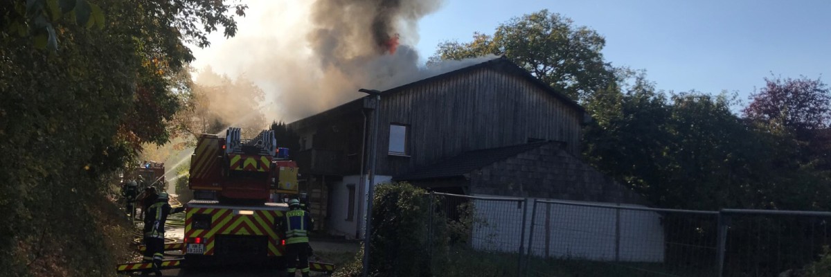 Gebäudebrand, Einsatz der Feuerwehren Cleebronn, Brackenheim und Heilbronn am Montag, 22. Oktober 2018