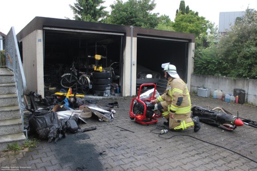 Anwohner meldeten am Sonntagabend einen Garagenbrand in Brackenheim-Hausen. In der wenige Meter neben dem Wohnhaus freistehenden Garage war aus bislang nicht bekannter Ursache ein Feuer ausgebrochen. In der Garage waren neben einem abgestellten Oldtimer auch Modellbau- und Fahrzeugteile gelagert.