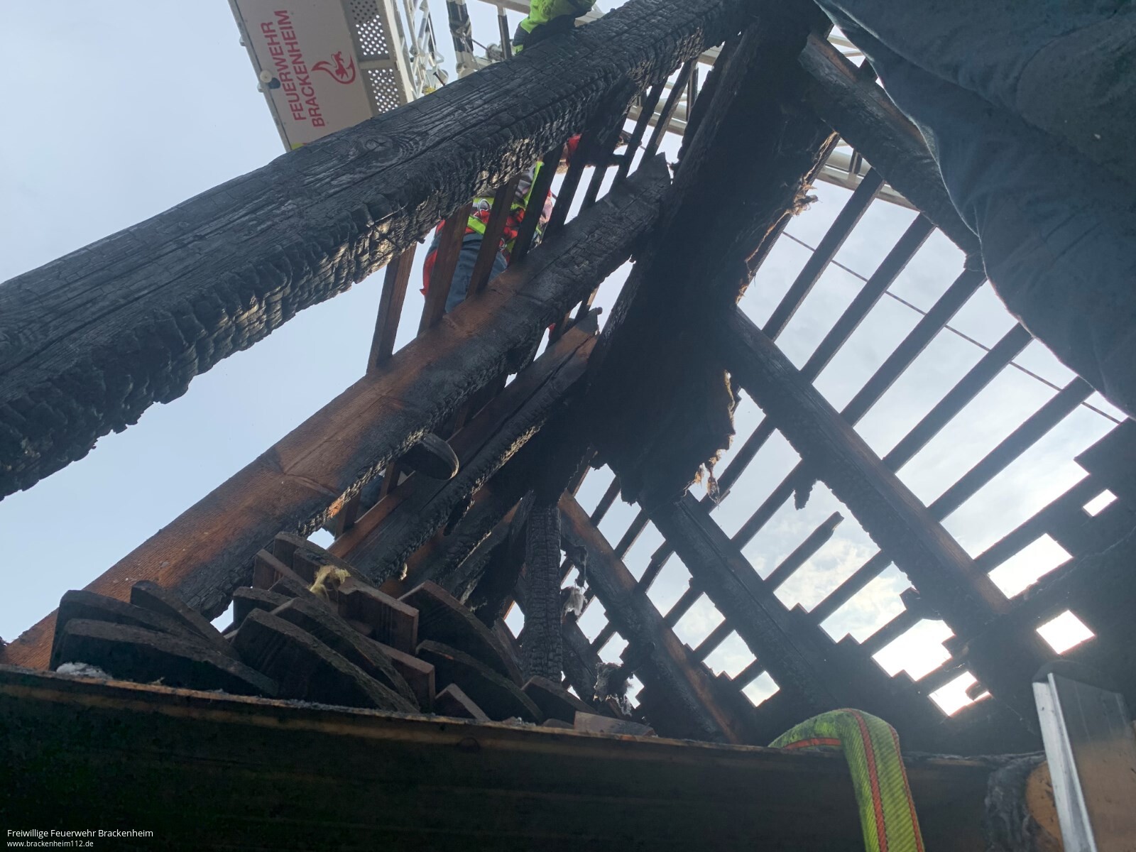 Im weiteren Verlauf wurde der Fachberater Statik des THW Widdern zur Überprüfung der Standsicherheit des Dachstuhls hinzugezogen, sowie ein Vertreter des Energieversorgers zur Sicherung bzw. Abschaltung der Stromversorgung.
