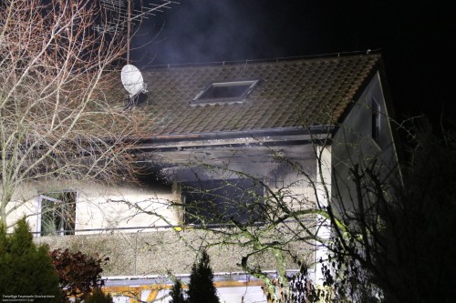 Beim Eintreffen der Feuerwehr stand das im ersten Stock eines Einfamilienhauses befindliche Zimmer bereits im Vollbrand und die zwei zum Brandausbruch im Gebäude befindlichen Personen konnten unverletzt im Freien angetroffen werden.