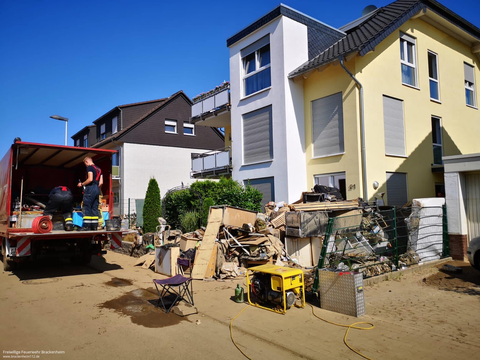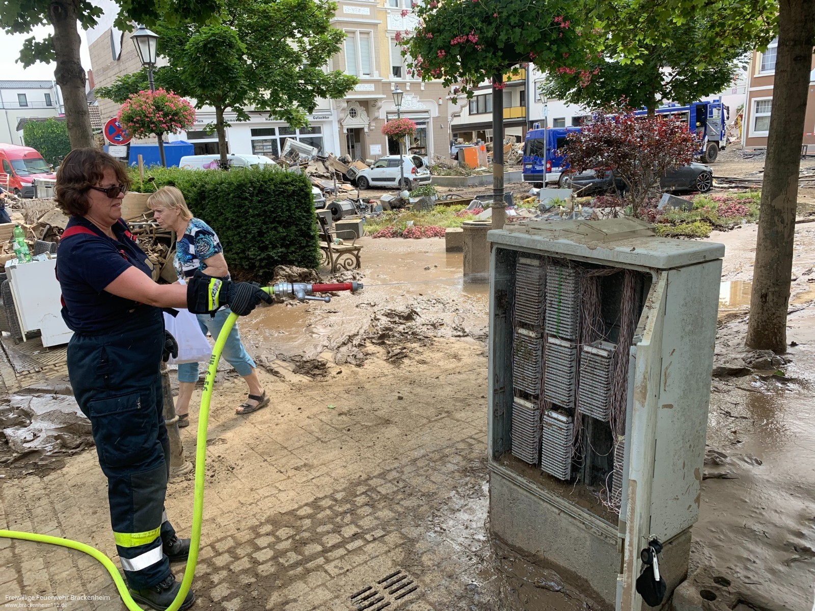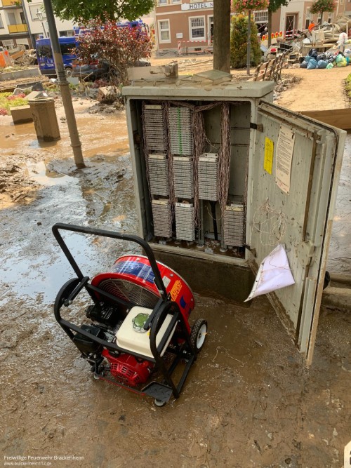 Nach einer kurzen Ruhephase war man anschließend für zwei Tage im Ortsgebiet Bad Neuenahr unterwegs und unterstützte dort auf vielfältige Weise. So half man beim Ausräumen von Schutt, beim Auspumpen von Kellern oder gab Reinigungshilfe für die Telekom um ihre Verteiler zu Reinigen, damit wo möglich schnell wieder eine Grundversorgung aufgebaut werden kann.