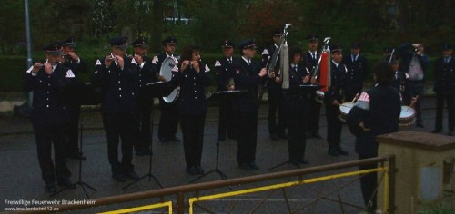Nein, es kam ganz anders: gegen 19:45 Uhr füllte es sich auf der Straße vor seinem Haus mit Blauröcken. Aber es waren nicht nur die Kameraden der Altersabteilung und des Löschzuges Brackenheim, nein, auch der Spielmannszug der Freiwilligen Feuerwehr Ilsfeld war dabei und spielte Helmut Apelt zu seinem Jubiläum auf.