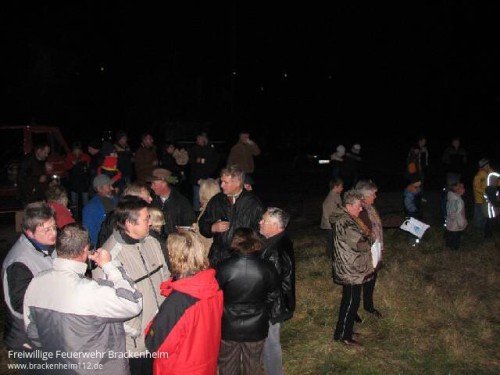 Kurz vor 17:30 Uhr wurde der erste Holzstapel neben dem Haberschlächter Sportplatz von den Kameraden des Löschzuges Haberschlacht entzündet. Er war nicht nur für die vielen Haberschlächter ein Hinweis, die vorbereiteten Tassen zu nehmen, sich warm einzupacken und in Richtung Sportplatz zu laufen, nein, auch einige Auswärtige wurden vom dem hellen Feuer angelockt und machten sich auf den Weg.