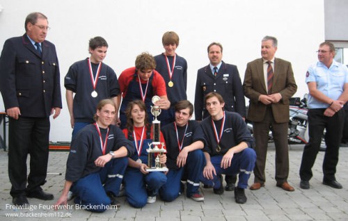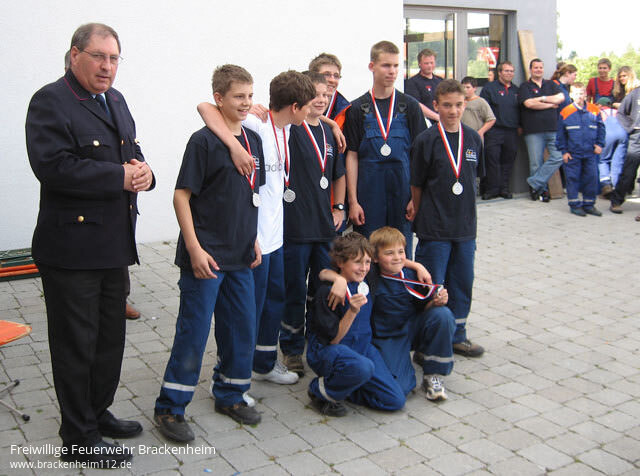 Am Ende stellte sich aber nur eine Frage: Wer nimmt den Wanderpokal mit nach Hause?. Sollte es Talheim, der Sieger der letzten Tour sein, die den Pokal wehmütig wieder mitbrachten? Oder die in der Vergangenheit immer sehr starken Bad Friedrichshaller? Alle waren gespannt, als Kreisjugendfeuerwehrwart Knut Steinbauer zusammen mit dem stellvertretenden Kreisfeuerwehr- verbandsvorsitzenden Hermann Jochim, dem Kommandanten der Feuerwehr Wüstenrot Hans Mühlmann und dem Bürgermeister Heinz Nägele die Ergebnisse vortrug. Doch am fünften Platz musste sich der letzte der Vorjahressieger von dem Pokal für weitere zwei Jahre verabschieden. Es folgten die Gruppen aus Güglingen auf den Plätzen drei und vier. Eine Mannschaft aus Untergruppenbach verfehlte als zweiter das gesteckte Ziel knapp. Aus einer Ecke drang nun ein erfreutes Ole, Ole hervor. Es kam von der Gruppe aus Nordheim. Sie holten sich, aufgereiht zu einer Polonaise den Pokal ab. Wir wollten ihn unbedingt gewinnen, das war unsere letzte Chance weil wir in zwei Jahren schon bei den Aktiven sein werden kam als Resonanz von der Siegesmannschaft zurück.
