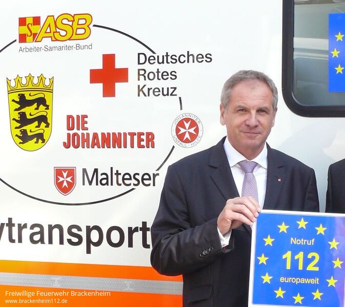 Um den Euronotruf bekannter zu machen, hat Innenminister Gall die Schirmherrschaft für das Projekt "112 - Feuerwehren und Rettungsdienste denken europäisch" übernommen, das vom Europa Zentrum Baden-Württemberg und dem Europe Direct Informationszentrum Stuttgart in Baden-Württemberg durchgeführt wird. Ziel der Aktion ist es, dass Feuerwehren und Rettungsdienst sich aktiv für die Bewerbung der europaweiten Gültigkeit des Notrufes 112 einsetzen. Eine gute Möglichkeit sei es, die Fahrzeuge mit dem blau-gelben Logo des Euronotrufs zu bekleben und dies auch der Öffentlichkeit vorzustellen, so der Innenminister. Die mit der Berufsfeuerwehr der Landeshauptstadt, der Flughafenfeuerwehr Stuttgart, einzelnen Freiwilligen Feuerwehren und dem DRK-Kreisverband Stuttgart durchgeführten Pilotphase sei erfolgreich verlaufen. Dort werde jetzt durch die "Notruf-112-europaweit"-Beklebung jeden Tag und bei jeder Einsatzfahrt der Feuerwehr oder des DRK-Kreisverbandes für die europaweite Gültigkeit des Notrufs 112 geworben.