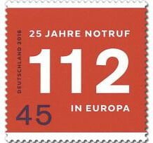 Sie ist ebenso markant wie einfach: Unter der Telefonnummer 112 erreichen Menschen in ganz Europa schnelle Hilfe. Zum 25. Geburtstag der europaweiten Einführung der kostenfreien Notrufnummer hat das Bundesministerium der Finanzen nun extra eine Briefmarke herausgegeben. Das Postwertzeichen zeigt â ebenfalls markant einfach â eine weiße Zahl auf rotem Grund. Die 45 Cent-Briefmarke ist ab dem Erstausgabetag 11. Februar 2016 an allen Verkaufsstellen der Deutschen Post AG erhältlich. Dieser Tag ist der âEuropäische Tag der 112â, der zum achten Mal stattfindet und den einheitlichen Notruf noch bekannter machen soll. Ob Feuer in Finnland oder Unfall in Ungarn: Der Notruf 112 ist in Europa der einheitliche und direkte Draht zu schneller Hilfe. Die Telefonnummer 112 ist mittlerweile in allen Staaten der Europäischen Union die Nummer in Notfällen. Auch in sämtlichen Handynetzen verbindet 112 mit der zuständigen Notrufzentrale.
