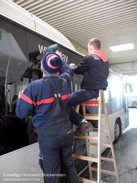 Zu einer außergewöhnlichen Aktion, trafen sich am Sa. 25.02.17 um 8:00Uhr morgens, 20 Kameraden/innen der Feuerwehren Bad Rappenau, Brackenheim, Cleebronn, Eppingen, Leingarten, Möckmühl und Schwaigern bei der Fa. Hofmann Busreisen in Bad Rappenau – Bonfeld.
