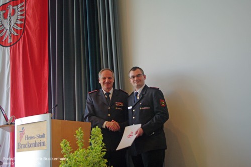 Brackenheims stellvertretender Bürgermeister Helmut Kayser stellte in seinen Grußworten das Verantwortungsbewusstsein und den Bürgersinn der Feuerwehrangehörigen heraus.