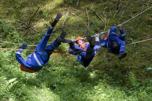 Der folgende Tag war auch sehr reich an Action. An einem breiten Bachgraben im Rottal hatten die Teilnehmer (und auch die Betreuer) einen Hindernisparcours mit Slackline über den Bach, Klettern und Sprint zu bewältigen. Hier ein großes Lob an die Gruppe, denn es haben alle super mitgemacht und manch einer hat sich selbst überwunden. Nach dieser Anstrengung kam die Wasserschlacht zwischen Betreuern und Jugendlichen als Abkühlungen genau richtig. Gestärkt durch ein super Gulasch folgte dann das Abendprogramm mit dem Spiel "Schlag den Star ähh Betreuer". In 16 Aufgaben traten die Betreuer gegen die Jugendlichen in Disziplinen wie u.a. Seilbeutel stopfen, Auto ziehen, Allgemeinwissen oder Geschicklichkeitsübungen an. Nach diesem kurzweiligen Spiel ließen wir den Abend am Lagerfeuer ausklingen.