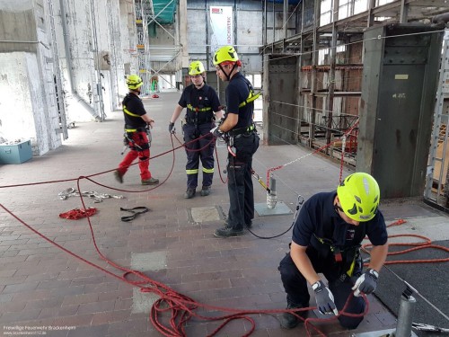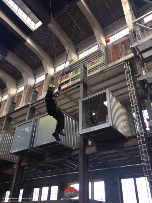 Zur umfangreichen Einweisung in das Arbeiten mit dem Gerätesatz Absturzsicherung machten sich vom 29. Juni bis 1. Juli Kameraden der Freiwilligen Feuerwehr Brackenheim und der Schwaigerner Werkfeuerwehr Söhner nach Marbach (Lkr. Ludwigsburg) auf. Im dortigen Trainingszentrum "Hochwerk" des Ilsfelder Anseilschutz-Herstellers Bornack lernten sie in einem 3-tägigen Lehrgang unter der Leitung von erfahrenen Ausbildern den Umgang mit dem Gerätesatz Absturzsicherung in Theorie und Praxis kennen. Das "Hochwerk" ist das weltweit größte Ausbildungs- und Trainingszentrum rund um die Themen Absturzsicherung und Höhenrettung.