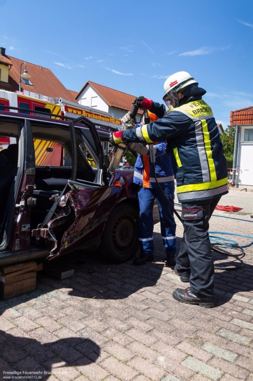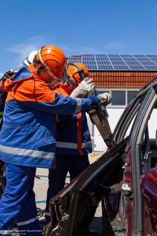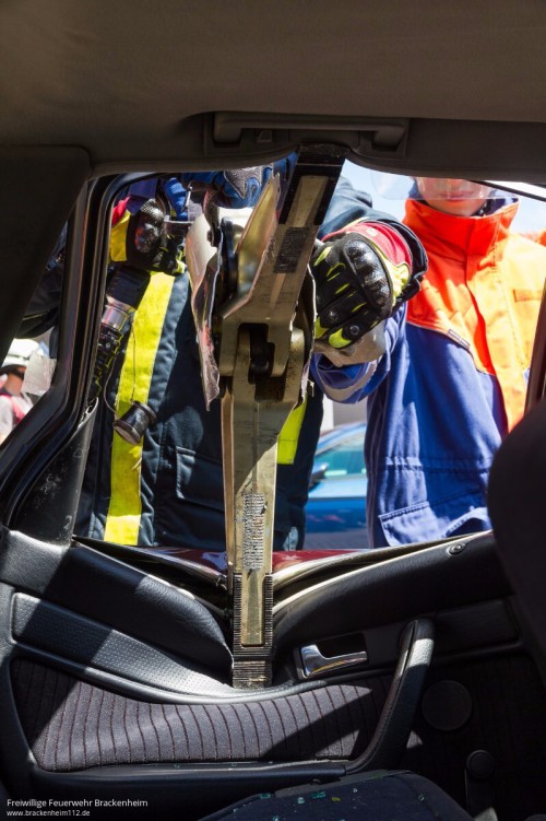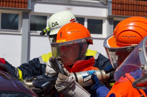 Nach dem Mittag ging es in die Vollen und das hydraulische Rettungsgerät kam zum Einsatz. Eindrucksvoll war, wie "einfach" hier eine Tür geöffnet oder komplett entfernt werden kann. Abschließend wurde der Kombi dann noch zum Cabrio umgebaut.