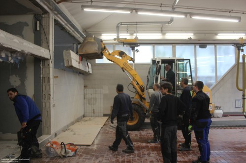 Parallel zur den Eigenleistungen arbeiten unter der Woche weiterhin Fachfirmen an der Fertigstellung. Nach dem Umzug in die neuen Räumlichkeiten erfolgt bereits der nächste Schritt der Bauarbeiten - der Umbau des bisherigen Werkstattbereichs in Umkleide- und Sanitärräume.